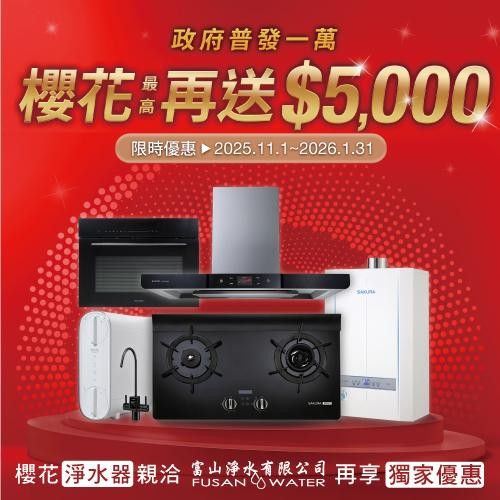 即日起至2026/01/31,櫻花指定產品回饋最高$5,000 (詳細活動辦法及回饋指定商品詳見下圖公告, 活動如有變動請依照櫻花官方公告為主) ...
