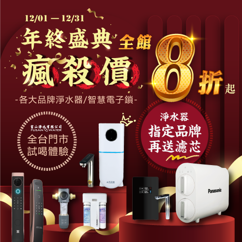 各大品牌淨水器 / 智慧電子鎖~豐富品牌、多樣款式任你挑選!! 活動期間:即日起至12/31止,點我看全台服務據點 2025年終盛典-全台門...