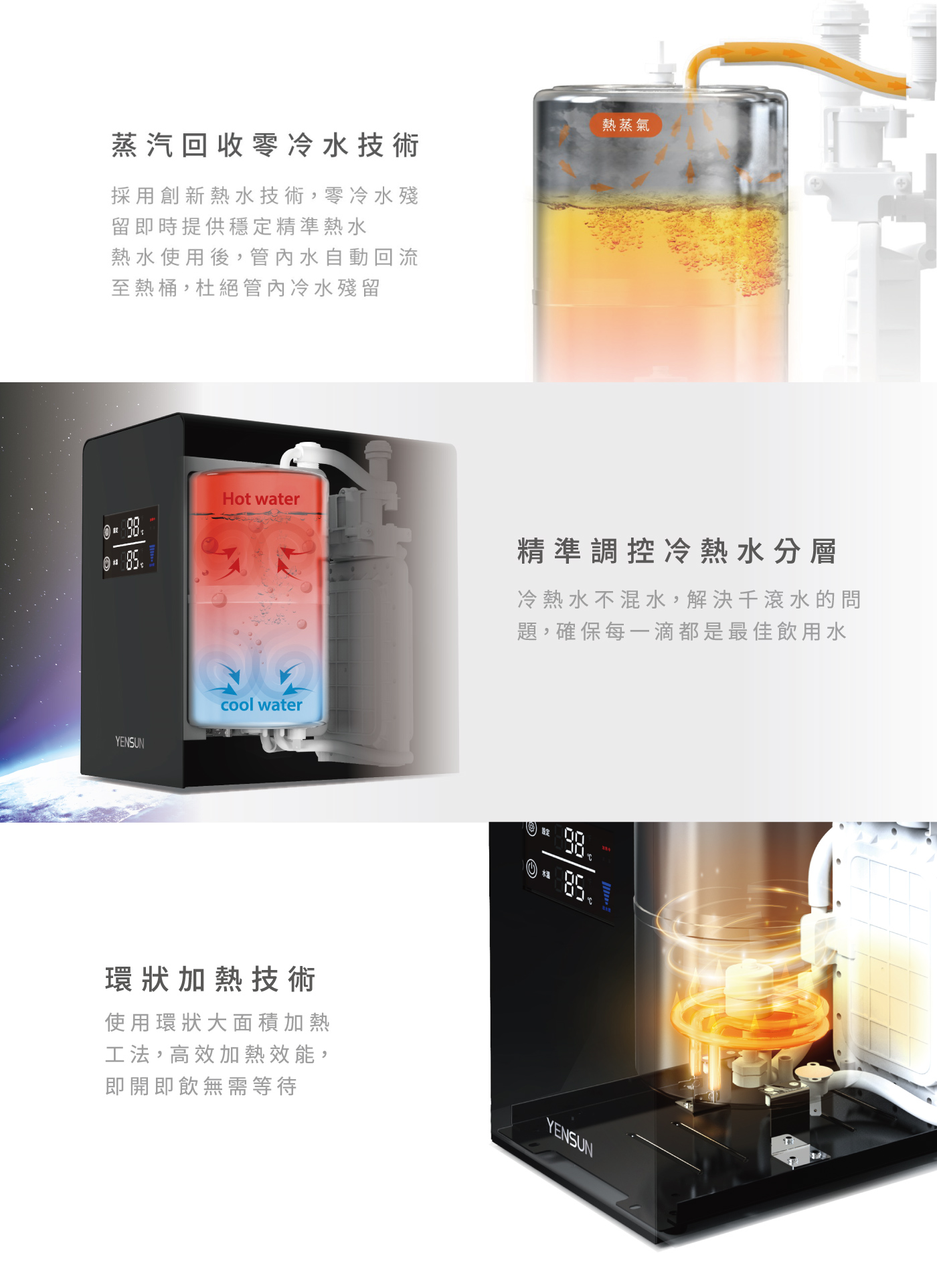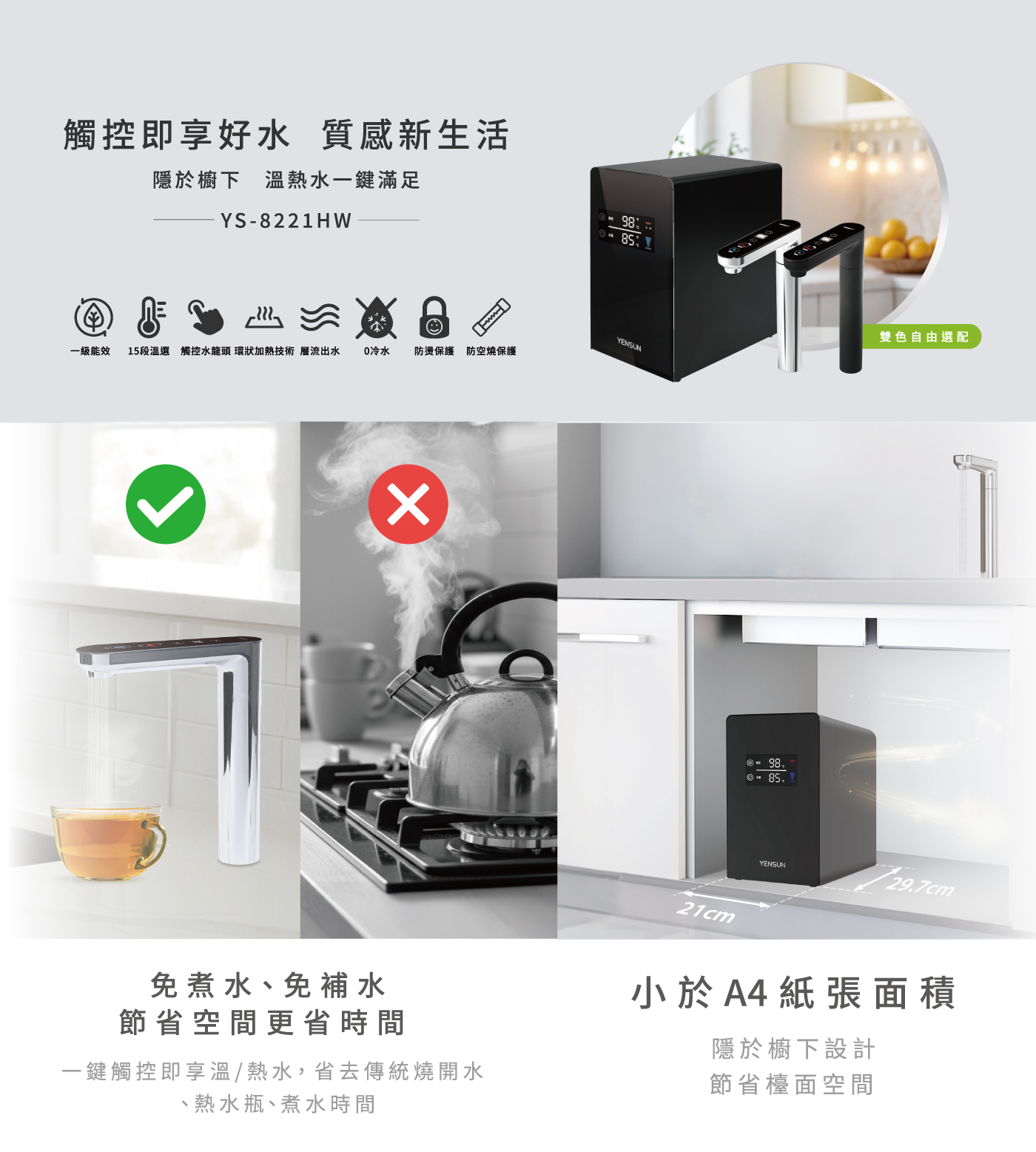 元山淨水 YS-8221HW 櫥下型觸控溫熱飲水機