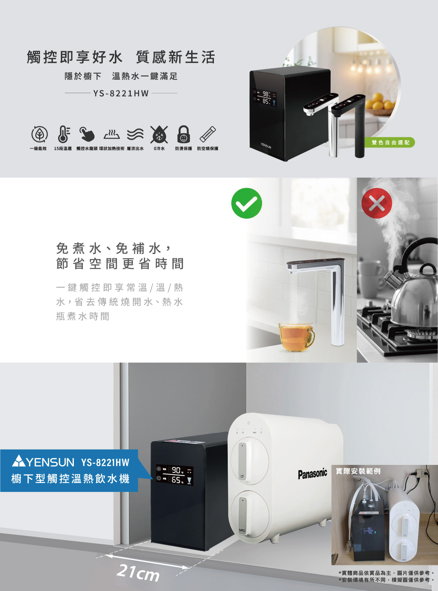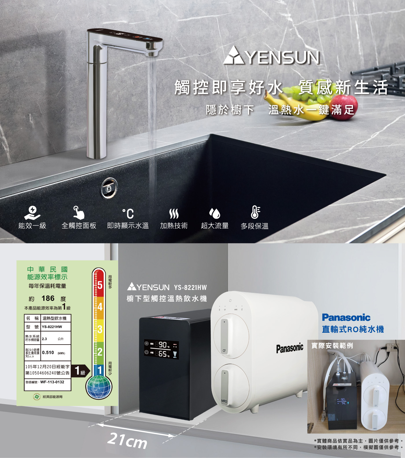元山 櫥下型淨水雙溫組-國際牌直輸RO純水機+元山櫥下型觸控飲水機(TK-RNB601WTW+YS-8221HW)