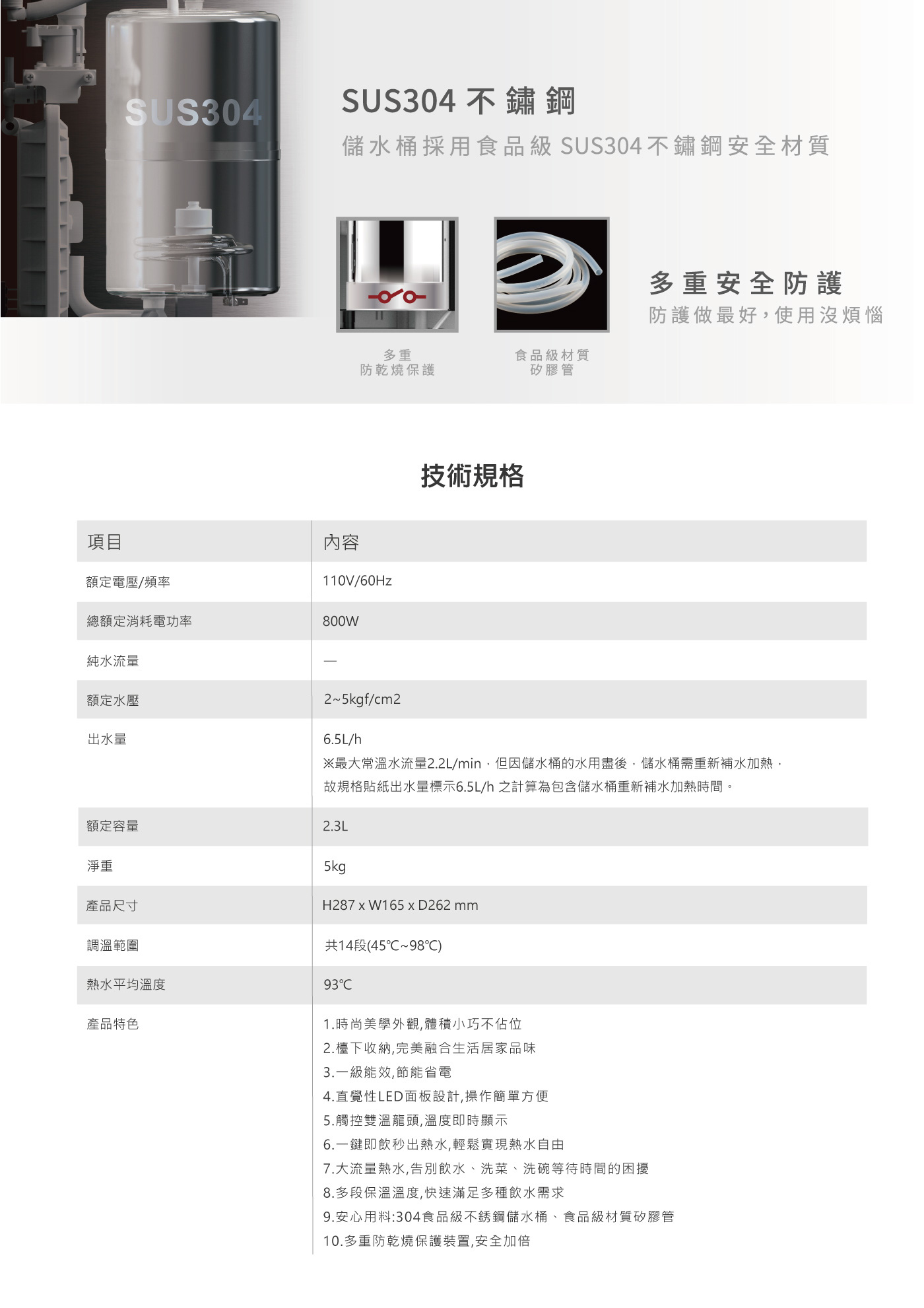▸食品級材質矽膠管、多重防乾燒保護