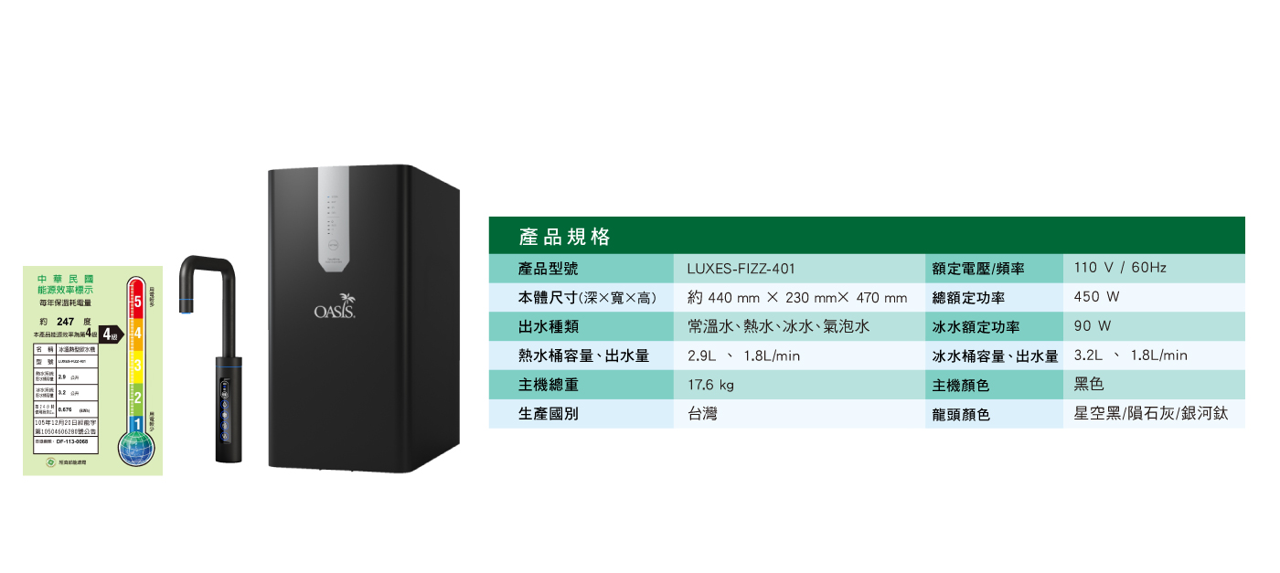美國OASIS 櫥下極奢氣泡三溫UVC飲水機(配置國際牌 600G 直輸RO純水機)