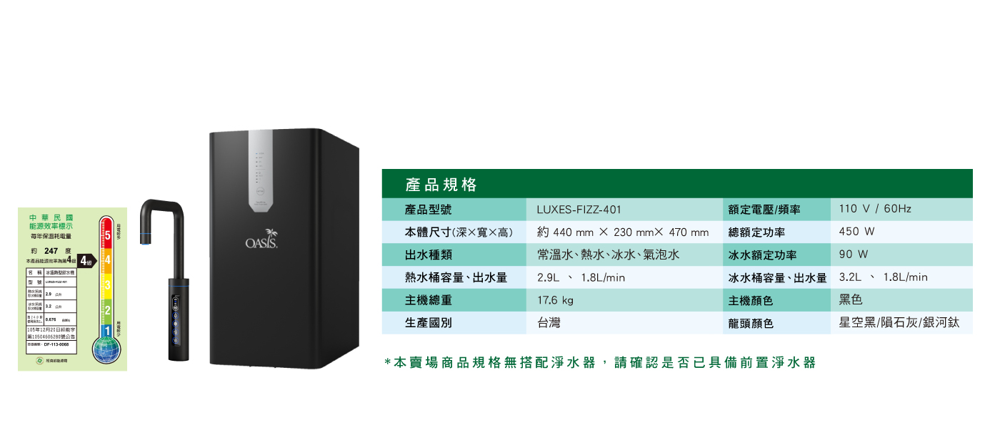 美國OASIS LUXES-FIZZ-401 櫥下極奢氣泡三溫UVC飲水機(需搭配前置淨水器)