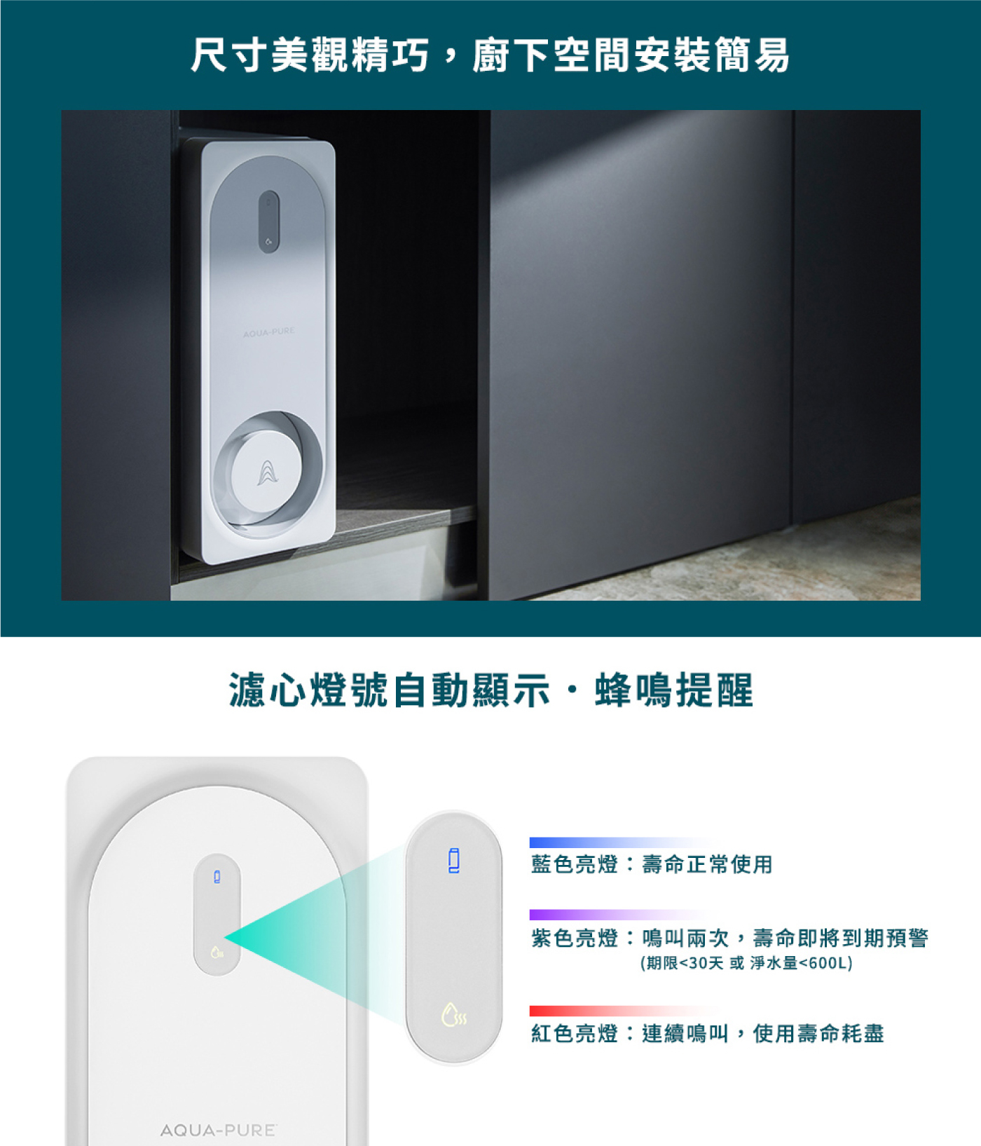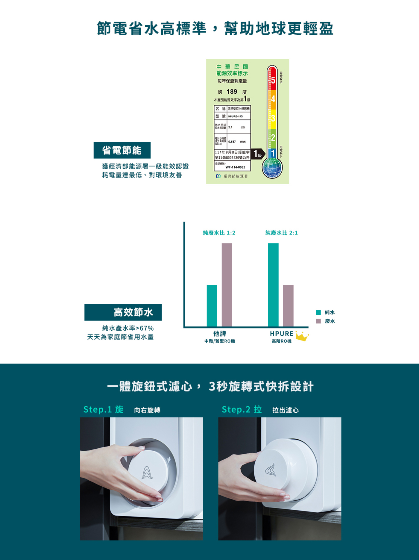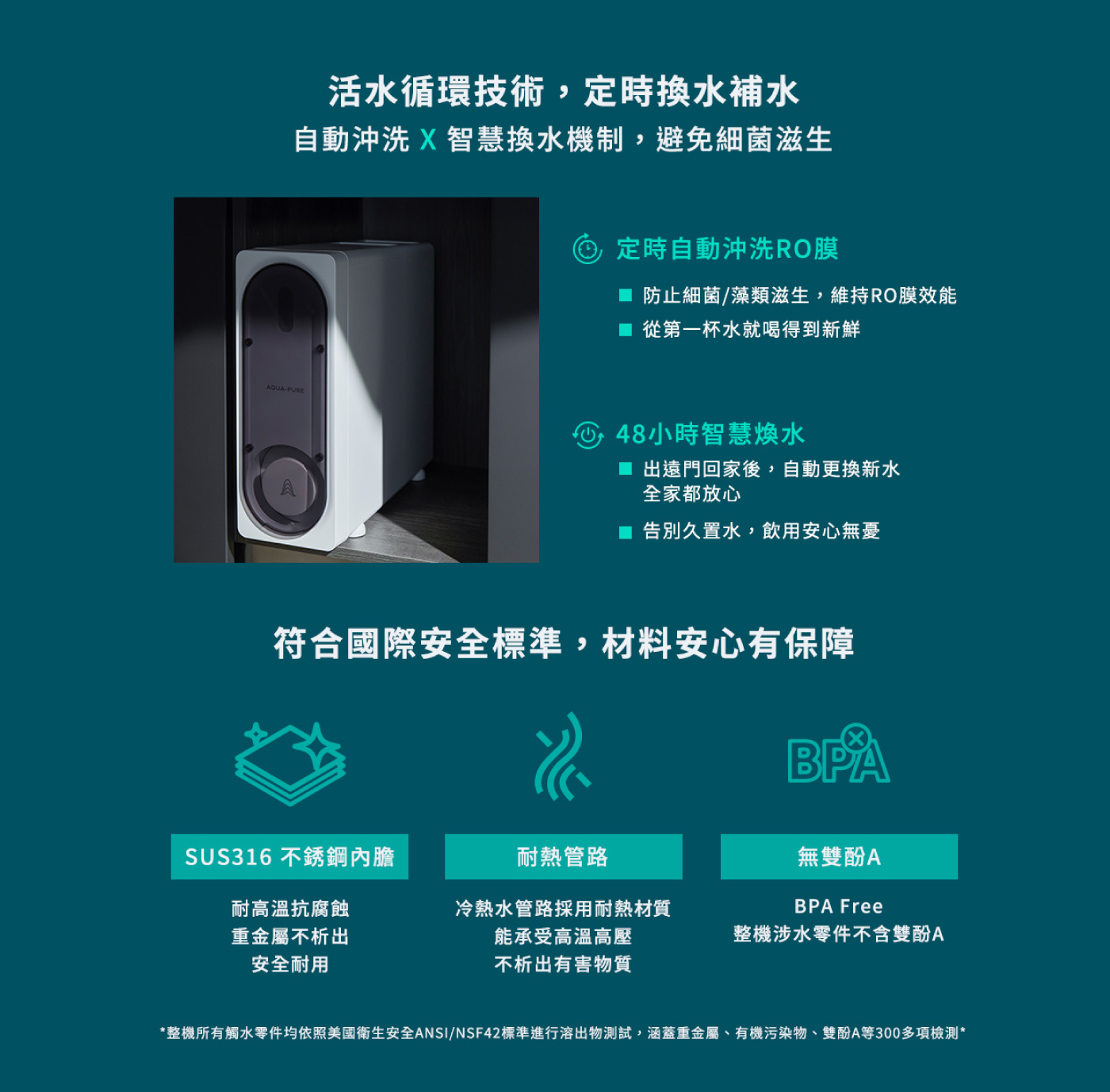 ▸五重濾材層層過濾,搭配600GPD RO膜,高效去除水中汙染物