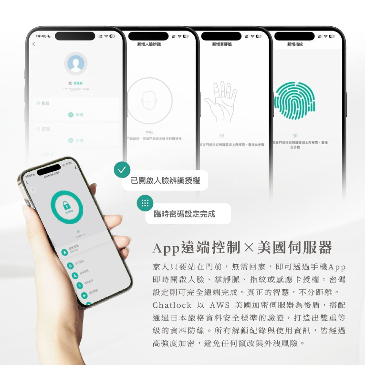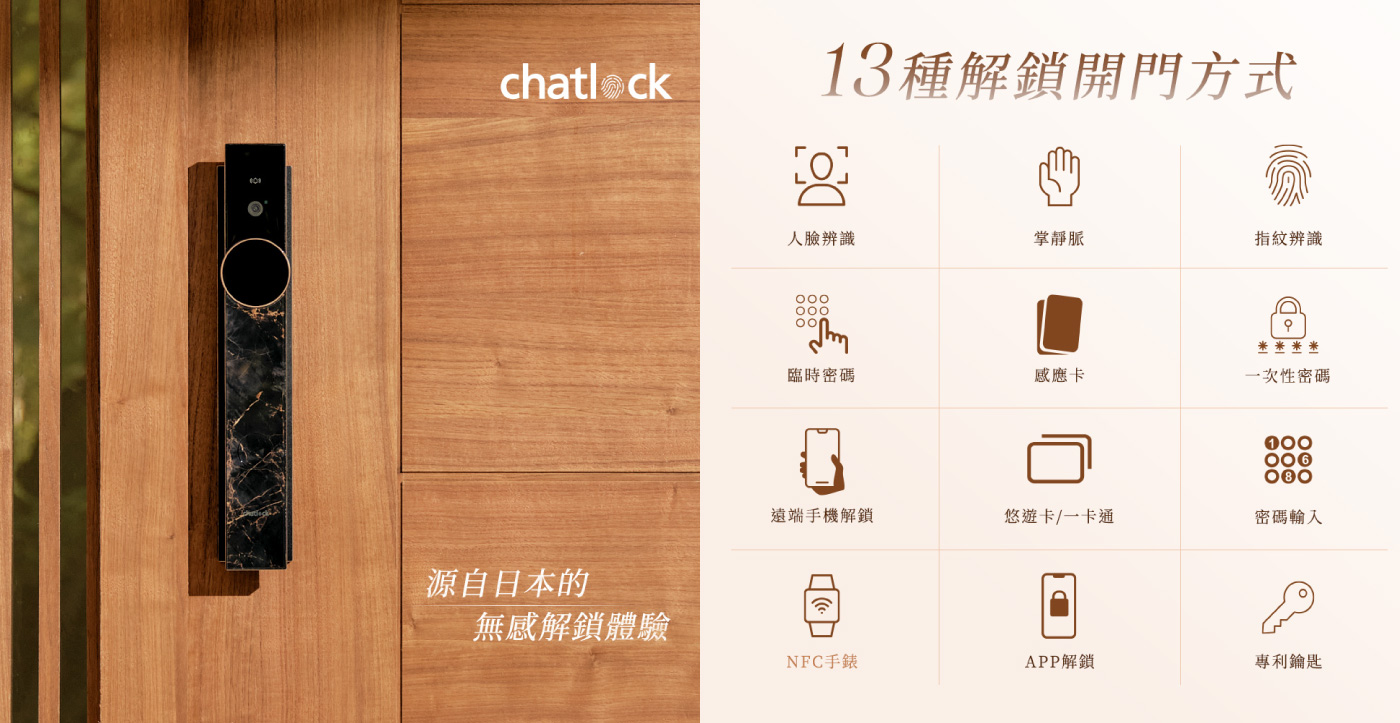 chatlock AI-99 十三合一人臉掌靜脈電子鎖(琉金大理石)